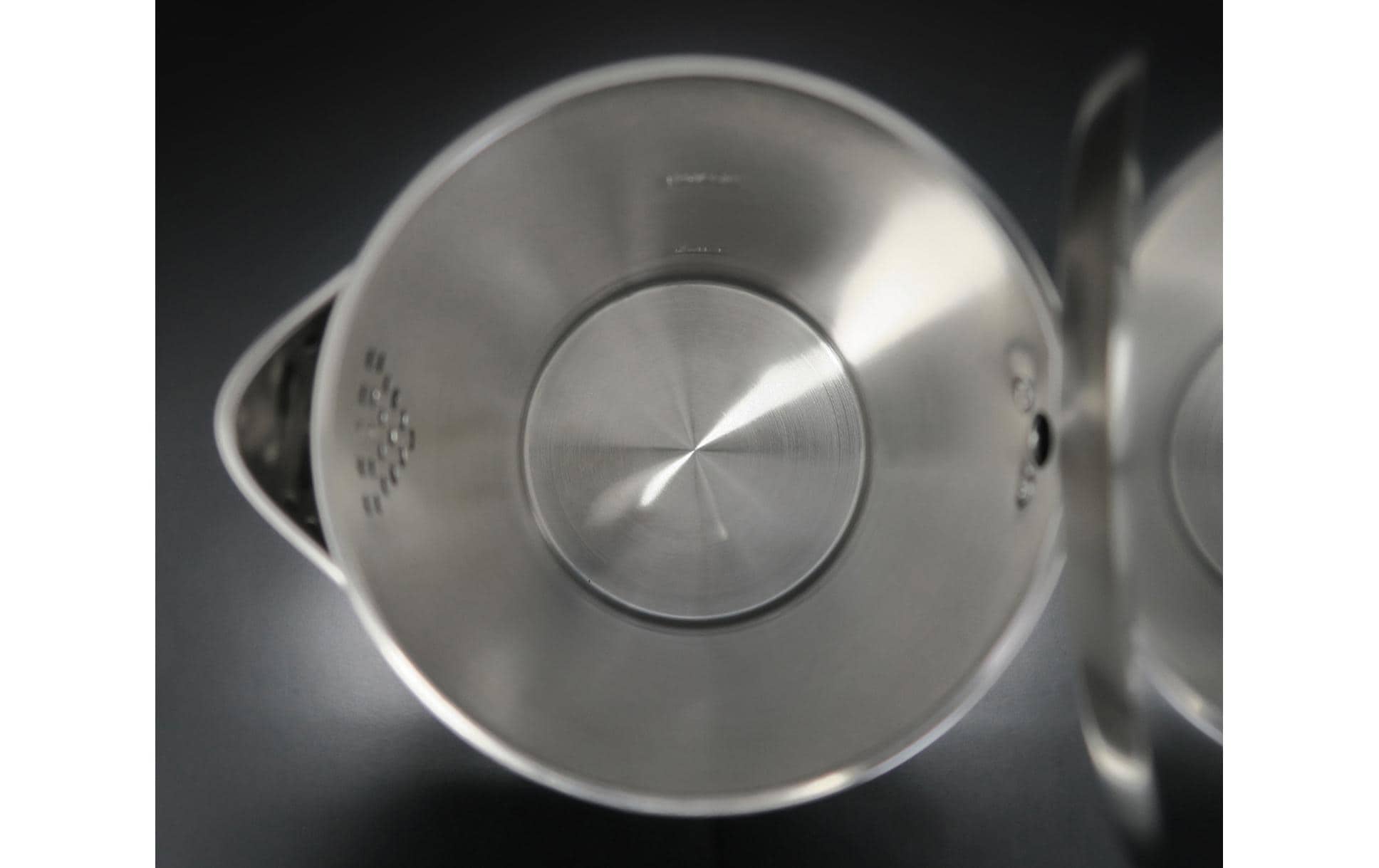 Con l'aiuto dello spegnimento automatico, il bollitore smette immediatamente di riscaldare l'acqua non appena viene raggiunta la temperatura desiderata: l'acqua bolle. Nel bollitore è integrato un sensore di temperatura che si basa sulla temperatura del vapore acqueo in aumento e quindi termina il processo. Questo sistema automatico inoltre protegge il materiale e riduce il consumo energetico. Tuttavia, non dovresti mai lasciare il bollitore incustodito per molto tempo!