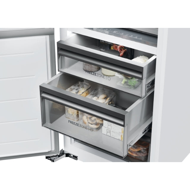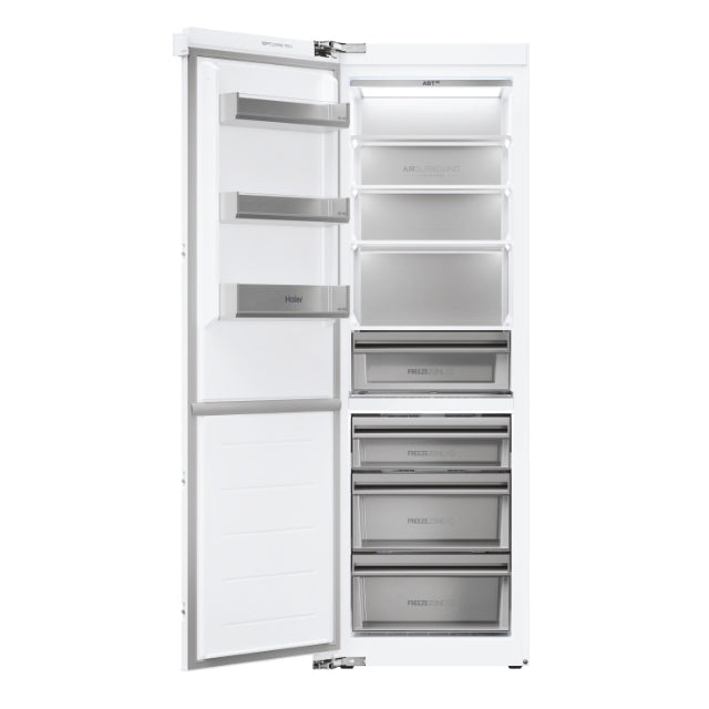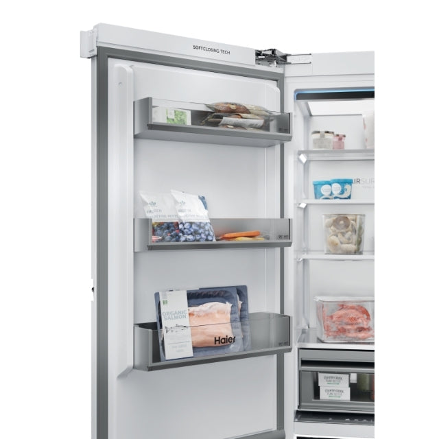 Il frigorifero e congelatore a una porta di Haier offre eccezionali possibilità di stoccaggio e soluzioni di raffreddamento avanzate, adattate al tuo stile di vita e che mantengono gli alimenti freschi più a lungo. Il design ben pensato si adatta alle tue esigenze quotidiane e offre opzioni di stoccaggio flessibili e cassetti pratici per un'organizzazione senza soluzione di continuità. Il modello a una porta della collezione Titanium Series 6 unisce innovazioni all'avanguardia come My Zone per impostazioni di temperatura personalizzabili, Air Surround per un raffreddamento uniforme e delicato e ABT Pro per una freschezza e igiene migliorate. Con dettagli raffinati come strisce luminose e una elegante colonna in metallo, combina funzionalità avanzata con uno stile moderno e snello, ridefinendo l'arte della conservazione degli alimenti.