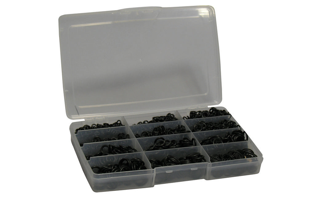 Confezione di guarnizioni o-ring assortite. 100 Pezzi di guarnizioni o-ring assortite, con diametri da 3/32 a 1/4. Ogni diametro è disponibile in 5 misure diverse. Speciale resistenza all'invecchiamento della gomma.