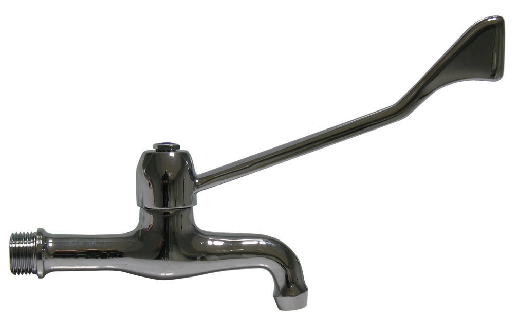 Rubinetto prolungato con leva a gomito, sporgenza della bocca di erogazione dalla parete mm. 126. Versione con vitone a chiusura rapida