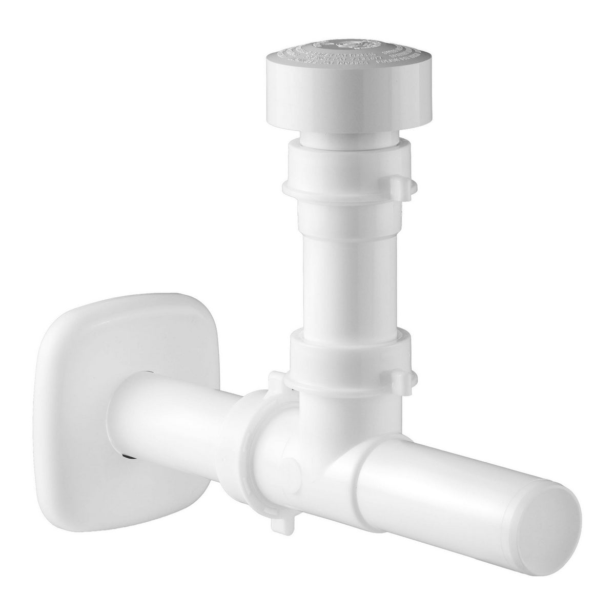 Valvola di aerazione automatica antigorgoglio da applicare all'uscita del sifone per lavabo e bidet. Adattatore a manicotto per uscita a muro diam.40 incluso. Dimensioni: L. 385mm x Diam. 32 o 40