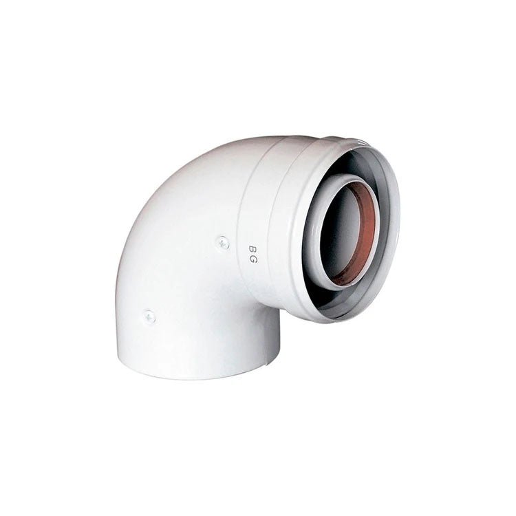 Curva cossiale 90° partenza caldaia. Per scaldabagni Aquaprojet a camera stagna art. 400-KABS-.
