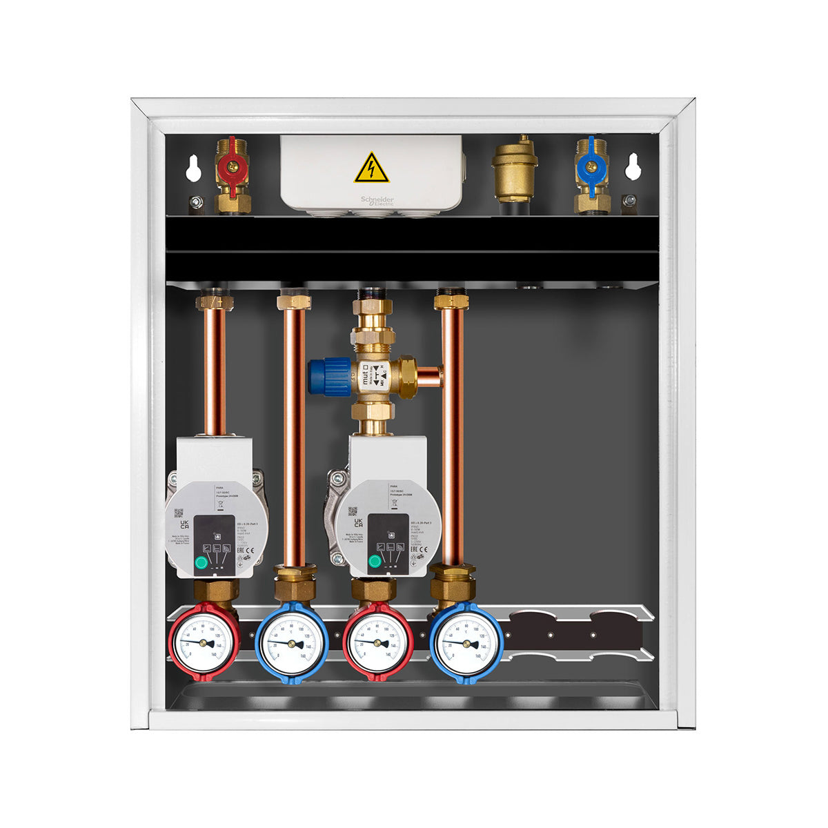 Modulo di distribuzione per riscaldamento multizona. Modulo con una zona diretta ed una zona termostatica. Circolatori Wilo Para 15/7. Circolatori secondo direttiva efficienza ERP 2015