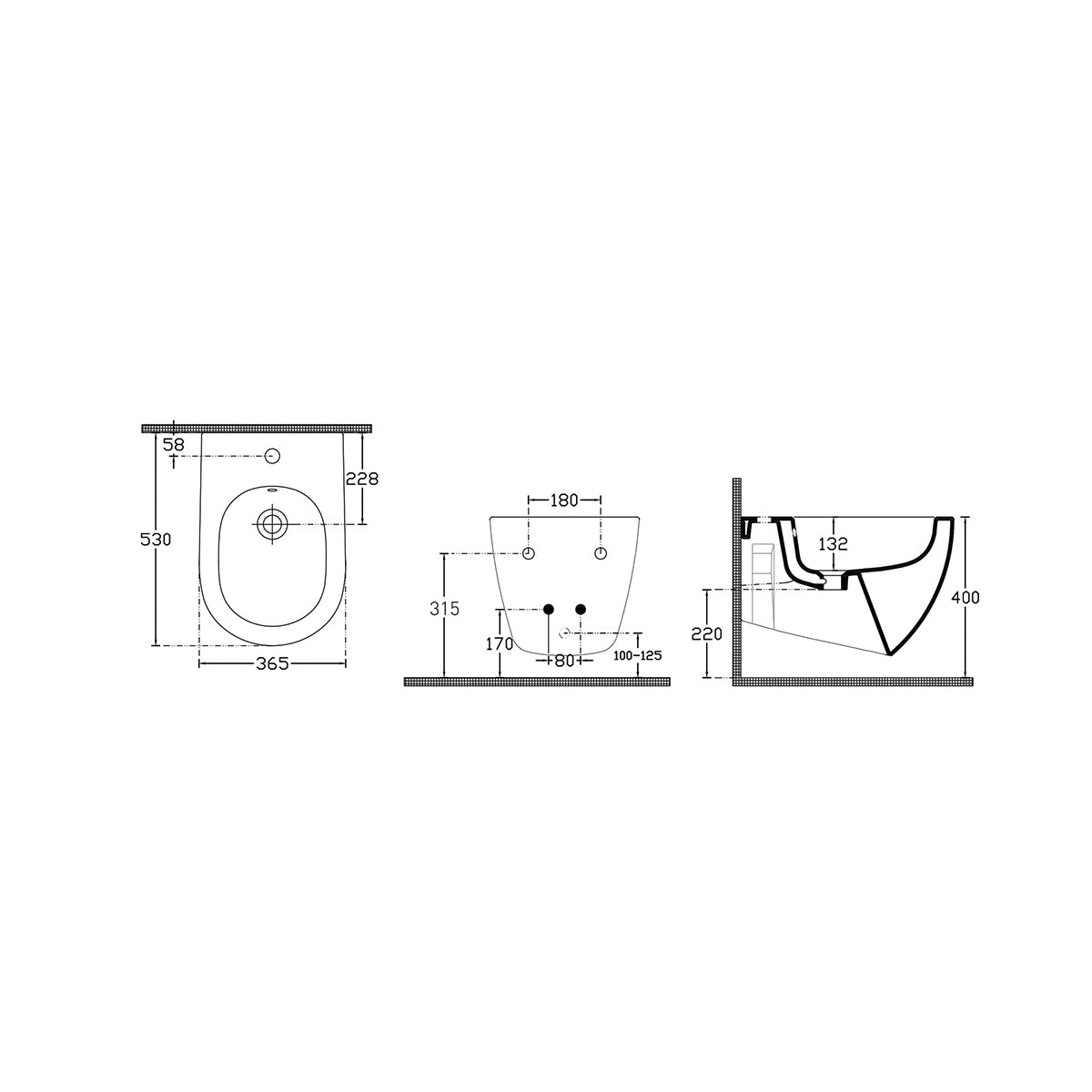 Bidet sospeso in ceramica serie Infinity, con erogazione rubinetto. Kit di fissaggio nascosto incluso. Piletta non inclusa. Collezione esclusiva disponibile in 13 finiture