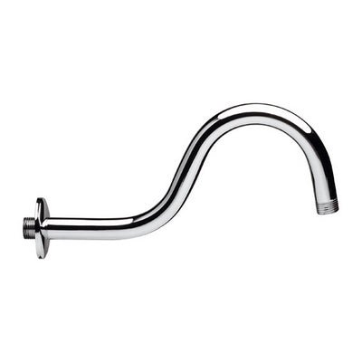 Gebogener Duscharm aus verchromtem Messing. UNI EN 248. Abmessungen: Länge 290 mm - Höhe 150 mm, Rosettendurchmesser 56 mm. Anschlüsse G 1/2".