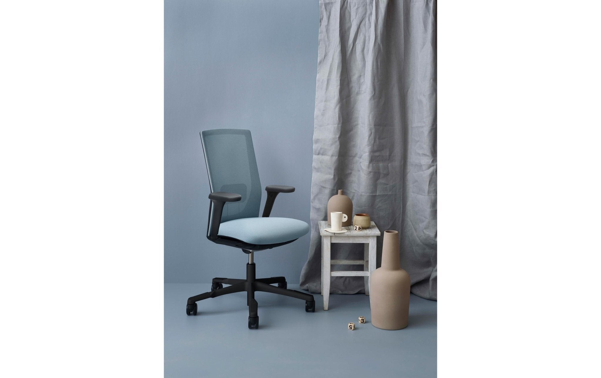- Material: Aluminium (Stuhlfuss), Polyester Stoff – FutuKnit solid Dusk (Bürostuhl-Bezug)