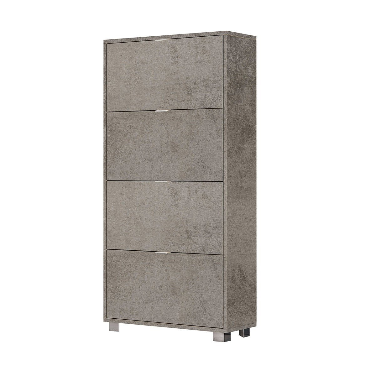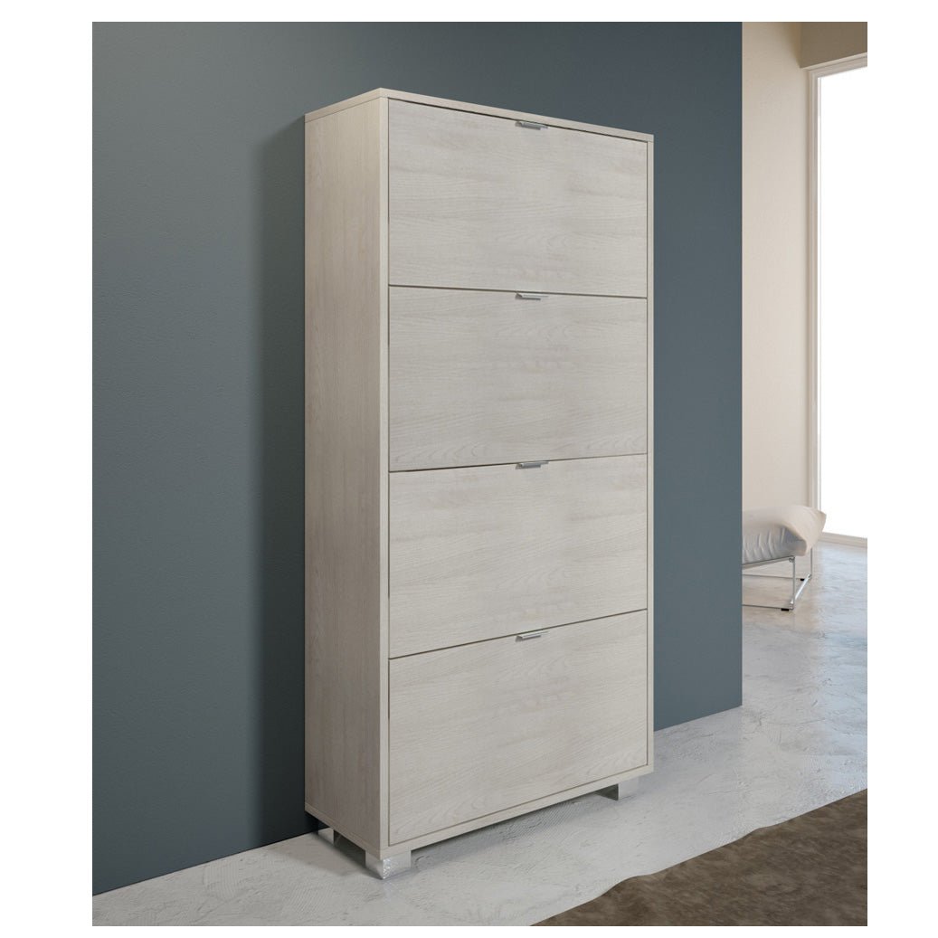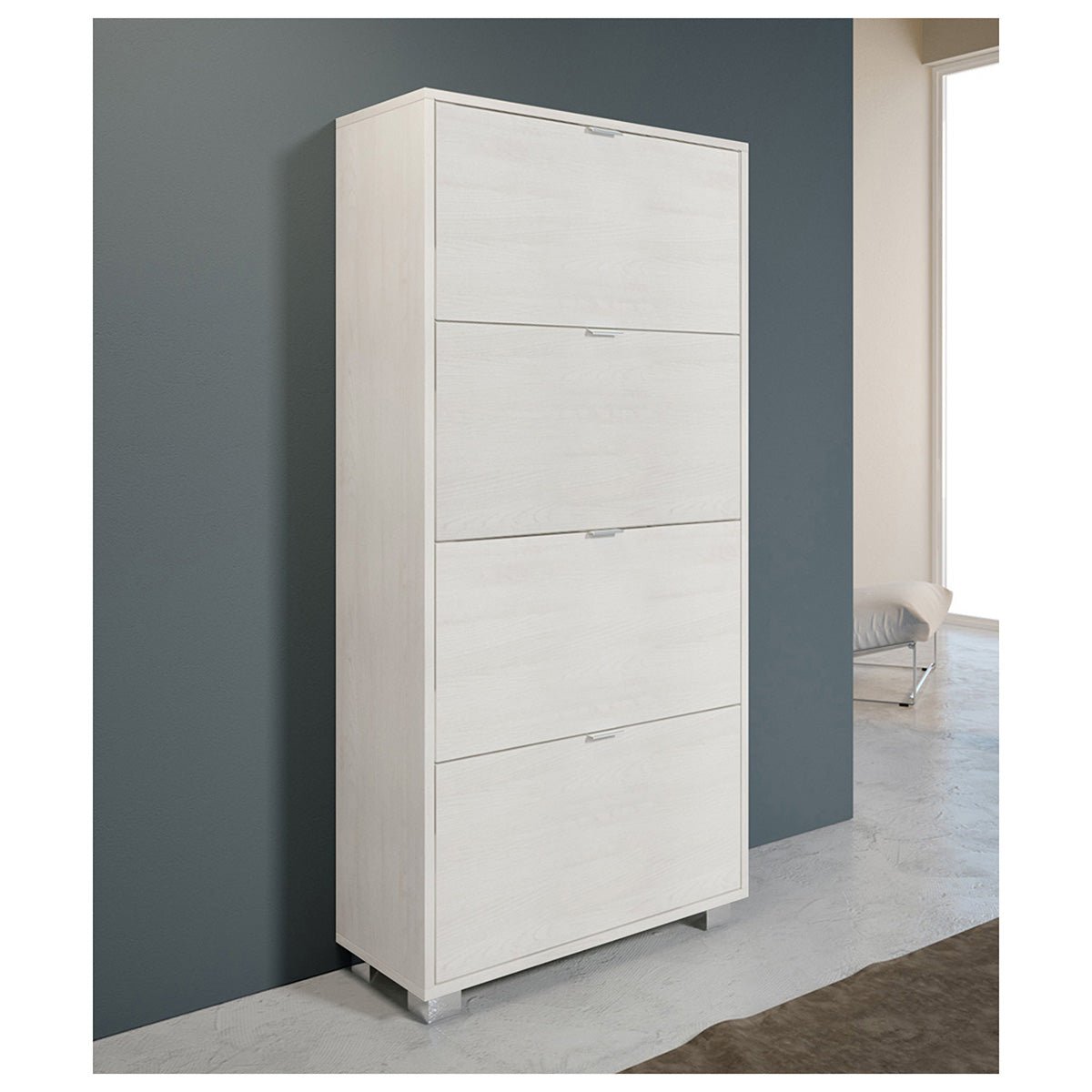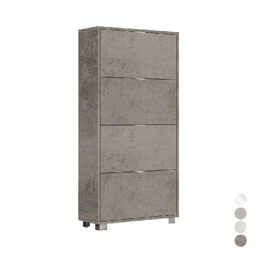 Schuhschrank mit 4 Klappen und doppeltem Gitter, verchromte Füsse. Hergestellt aus melaminbeschichtetem Spanplatten mit einer Stärke von 16 mm. Geliefert mit 4 Füssen und Befestigungsschrauben.