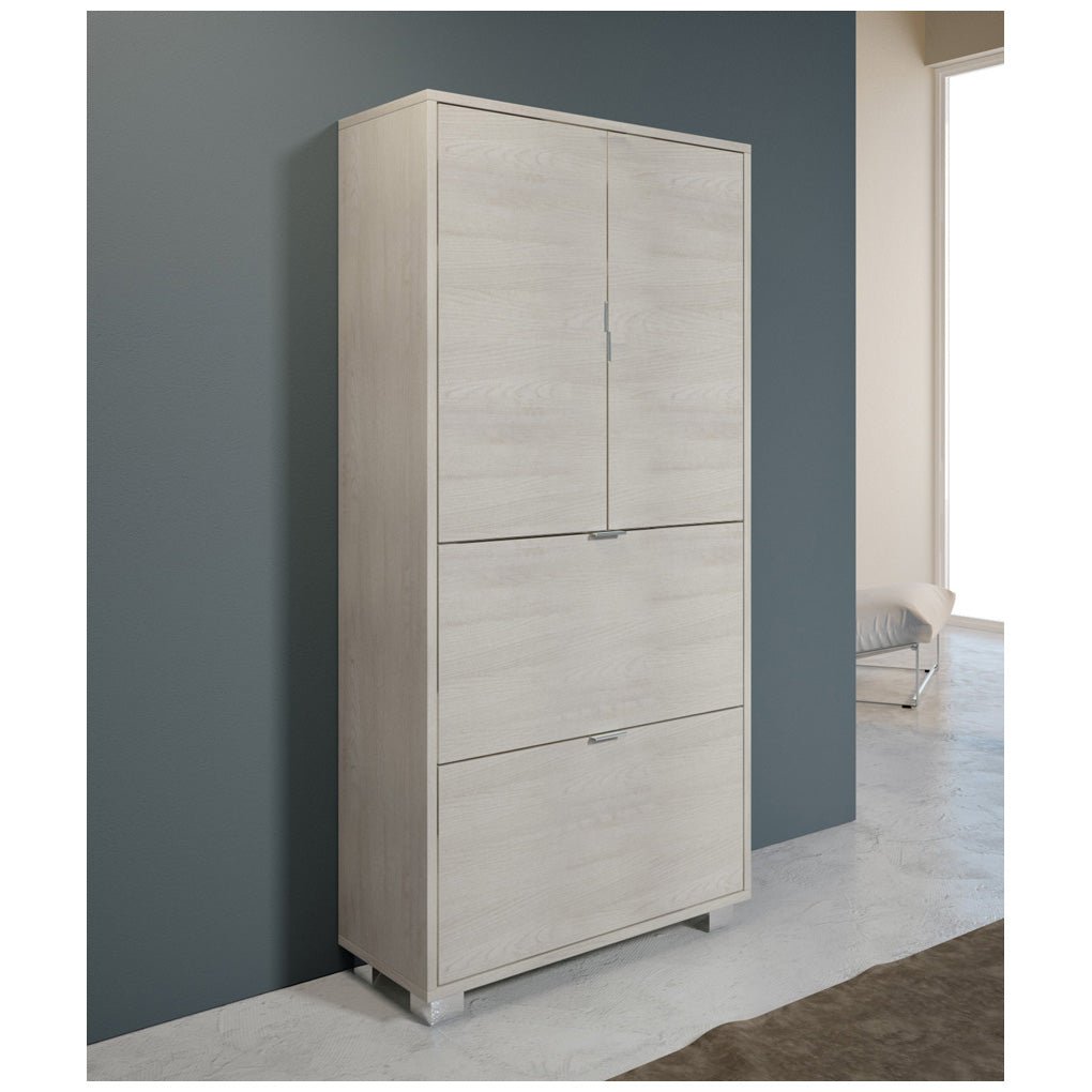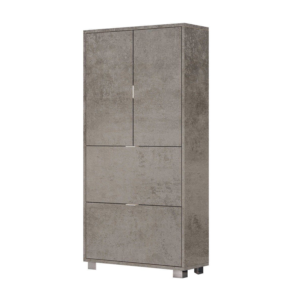 Mehrzweckschrank mit zwei oberen Türen und zwei unteren Klapptüren mit Doppelgitter. Hergestellt aus melaminbeschichteter Spanplatte mit einer Stärke von 16 mm. Geliefert mit 4 Füssen und Befestigungsschrauben.