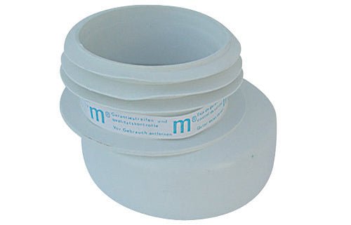Exzentrische elastische Muffe aus material, das unempfindlich gegen Harnsäuren und Reinigungsmittel ist, ermöglicht den Anschluss an WC mit einem Durchmesser von 100 mm
