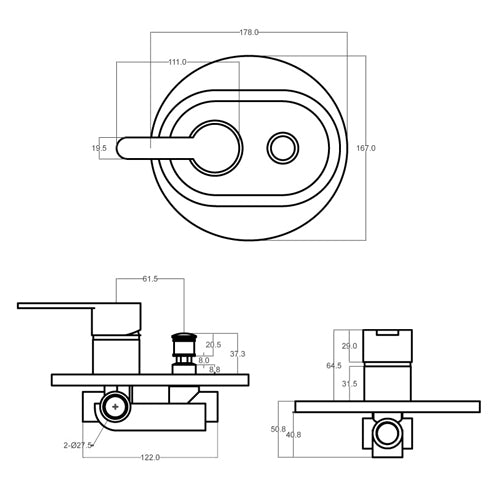 Einbau-Einhebelmischer für Dusche mit Umsteller, Patrone Durchmesser 35 mm