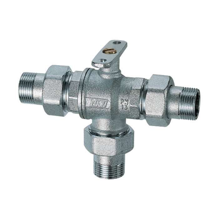 Motorisierbares 3-Wege-Umlenkventil verchromt mit Kugel. Ventilkörper: Messing CW617N. Dichtungen: O-Ring aus EPDM und Sitz aus PTFE. Nenndruck: 16 bar. Maximale Differenzdruck: 5 bar. Flüssigkeitstemperatur: -10 °C (mit Frostschutz) +100 °C. Verwendbare Flüssigkeiten: Wasser und Wasser mit Glykol. Anschlüsse: männlich-männlich. Gesamtdurchgang.