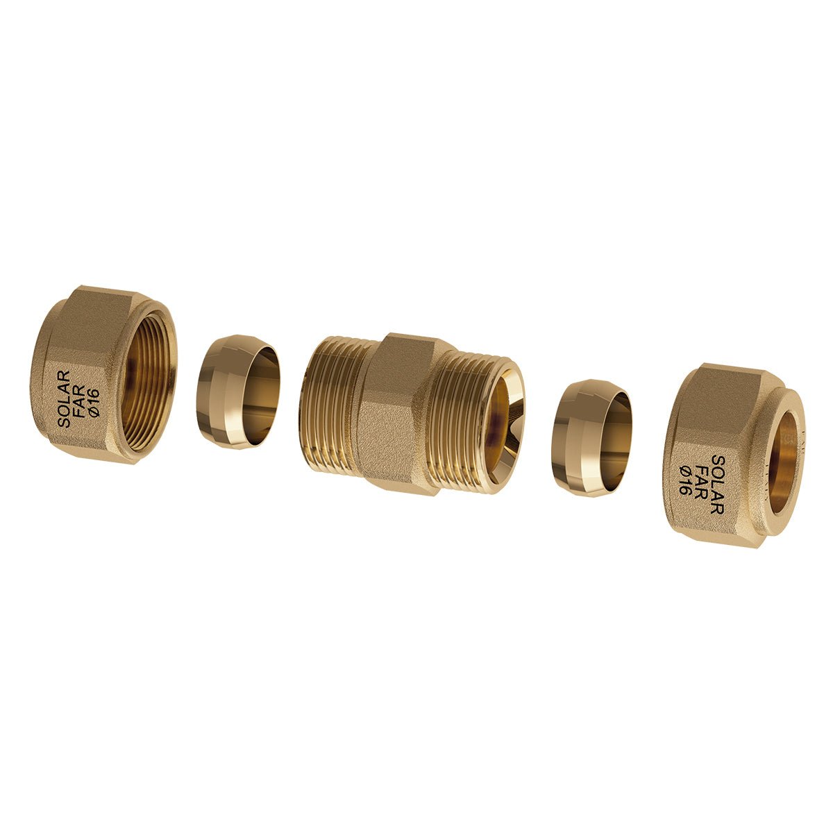 Körper aus Messing CW617N. Maximale Druck: 10 bar. Maximale Betriebstemperatur: 200 °C. Geeignet für den Anschluss von Kupfer- und Stahlrohren.