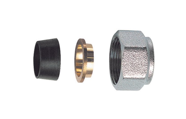Dichtungsset aus komprimierbarem Gummi für Kupferrohre, komplett mit verchromtem Deckel mit Gewinde 24x19 Gas. Monokonus aus kalkbeständigem Gummi gemäss UNI EN 291.