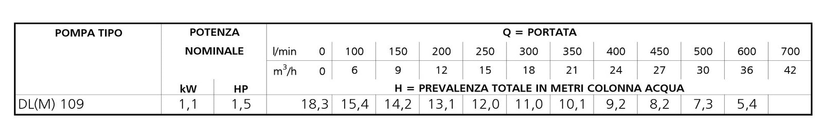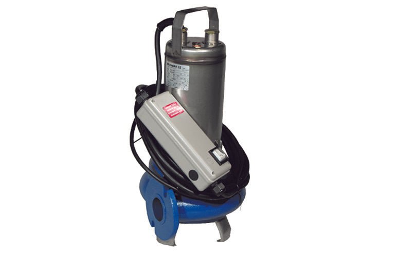 Einphasenpumpe mit trockenem Motor, asynchron, gekühlt durch die umgebende Flüssigkeit. Laufrad und Pumpengehäuse aus Edelstahl ASI 304. Pumpengehäuse aus Gusseisen. 355-DLM-109A Q = 200:600 Liter/min H = 13,1:5,4 m.