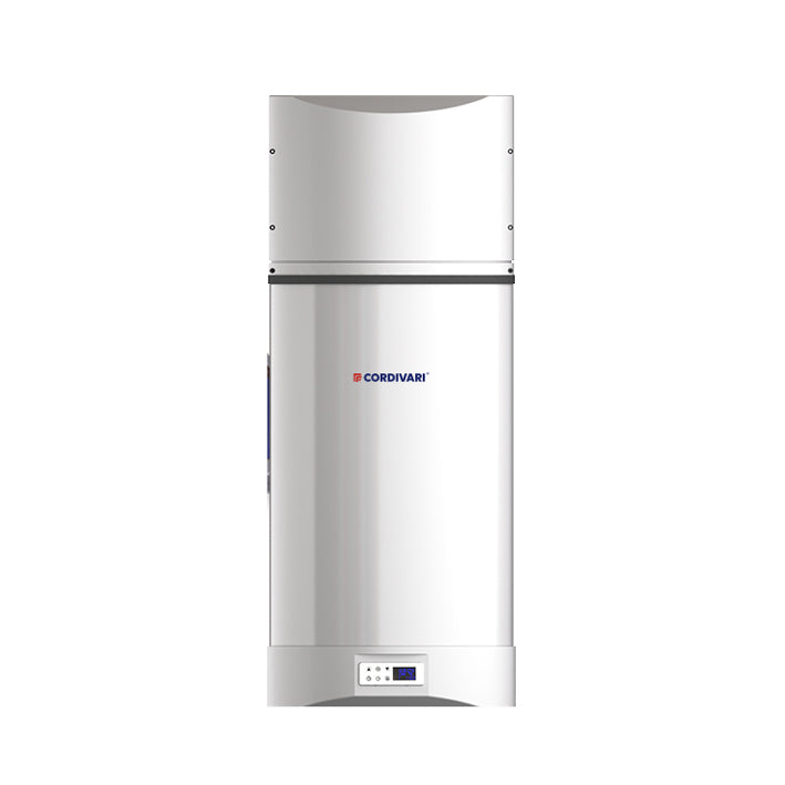 Erzeugung und Speicherung von Warmwasser (ACS). Die Erwärmung des Wassers erfolgt durch eine integrierte Rotationskompressor-Wärmepumpe, ausgestattet mit einem externen Kondensatorspirale im Warmwasserspeicher