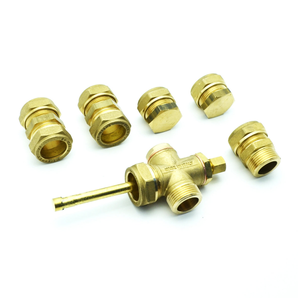 Anschlusskit erforderlich für die Verbindung von Anlagen mit 2 oder 3 Kollektoren, einschliesslich Ventil und Brunnen für den Sensor