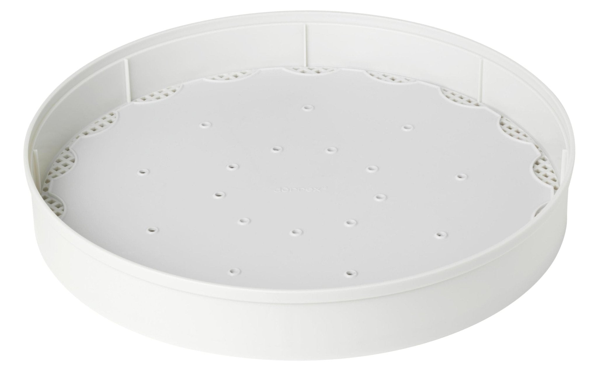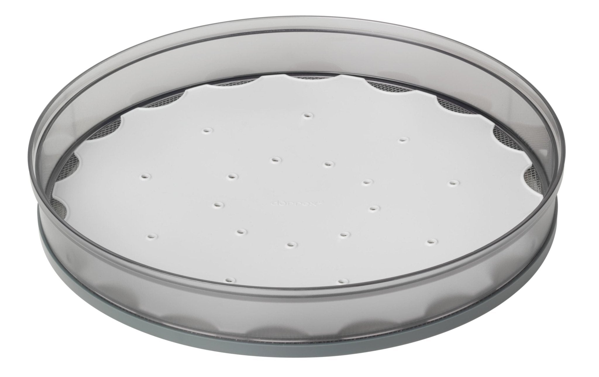 Für stark saftendes Gemüse oder Früchte. Verhindert zuverlässig das Tropfen der Feuchtigkeit ins Gehäuse. Geeignet für Metall- und Kunststoffsiebe, BPA-frei.