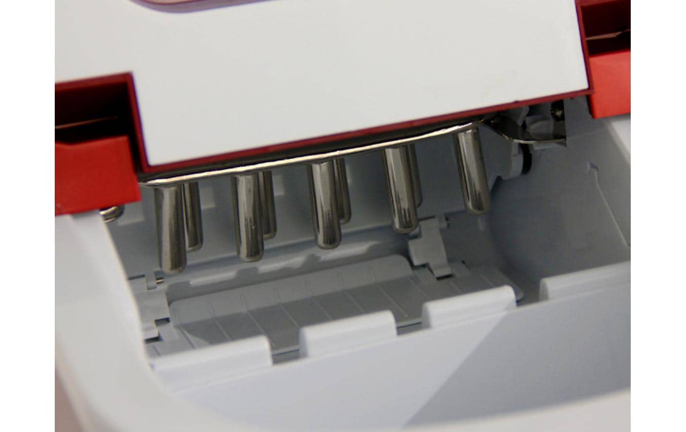Ohne Eis schmeckt selbst der beste Drink nicht richtig. Mit dieser Eiswürfelmaschine produzieren Sie pro Tag bis zu 12 kg Eis – was wohl für den einen oder anderen Drink für Sie und Ihre Freunde ausreichen dürfte. Das kompakte Gerät ist leise, einfach in der Anwendung und produziert kleine (ca. 4.5 g) bis grosse Hohlkegel-Würfel (ca. 7 g), die in einem 1 kg Eisspeicher gelagert werden.