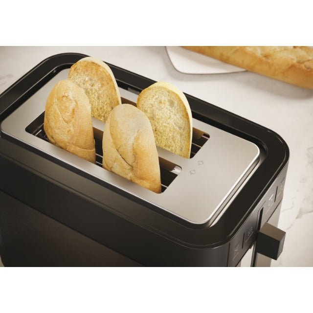 Unser I-Master Toaster der Serie 5 macht das Toasten zum Kinderspiel - egal ob Brotscheibe, Toast oder Brötchen. Mit seiner benutzerfreundlichen Touch-Bedienoberfläche und 7 Toaststufen passt er sich perfekt Ihren Vorlieben an. Zusätzlich bietet er 21 benutzerdefinierte Programme und eine grosszügige Einschubtiefe von extra 25 %, um eine gleichmässige Bräunung des Brotes, unabhängig von seiner Grösse und Form, zu gewährleisten.