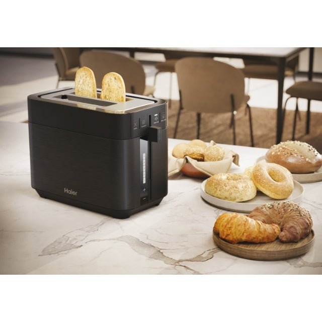 Das schicke, komplett schwarze Design und das Gehäuse aus gebürstetem Metall verschönern Ihre Küche und machen den I-Master Toaster zu einem stilvollen Hingucker. Erleben Sie maximale Flexibilität und Stil mit Haier.