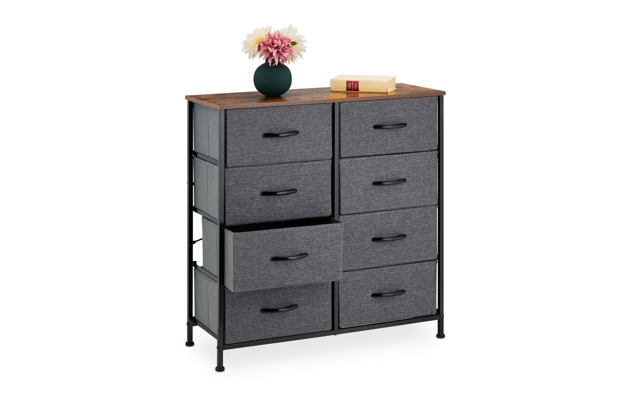 relaxdays Kommode mit 8 Schubladen 81,5 x 80 cm, Dunkelgrau/Schwarz