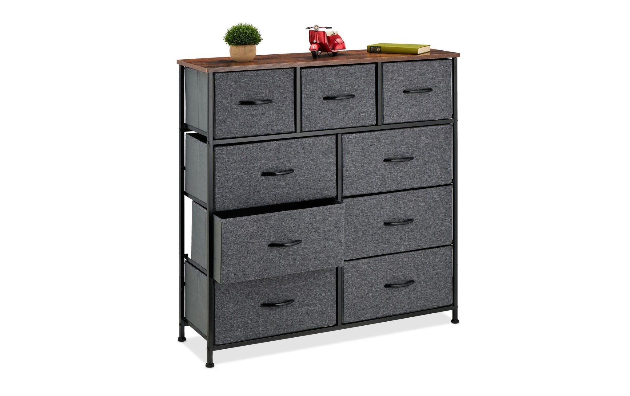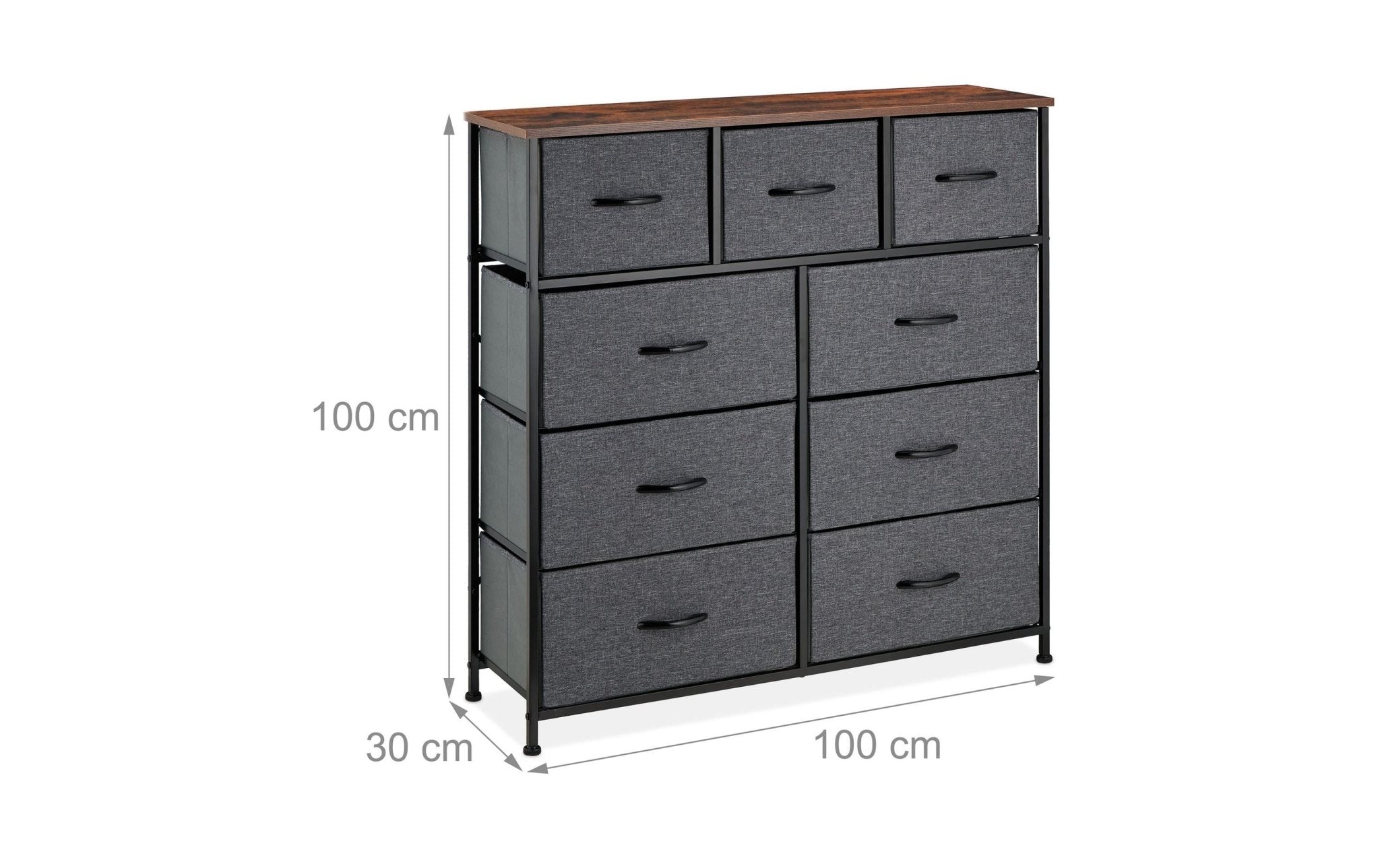 relaxdays Kommode mit 9 Schubladen 100 x 100 cm, Dunkelgrau/Schwarz