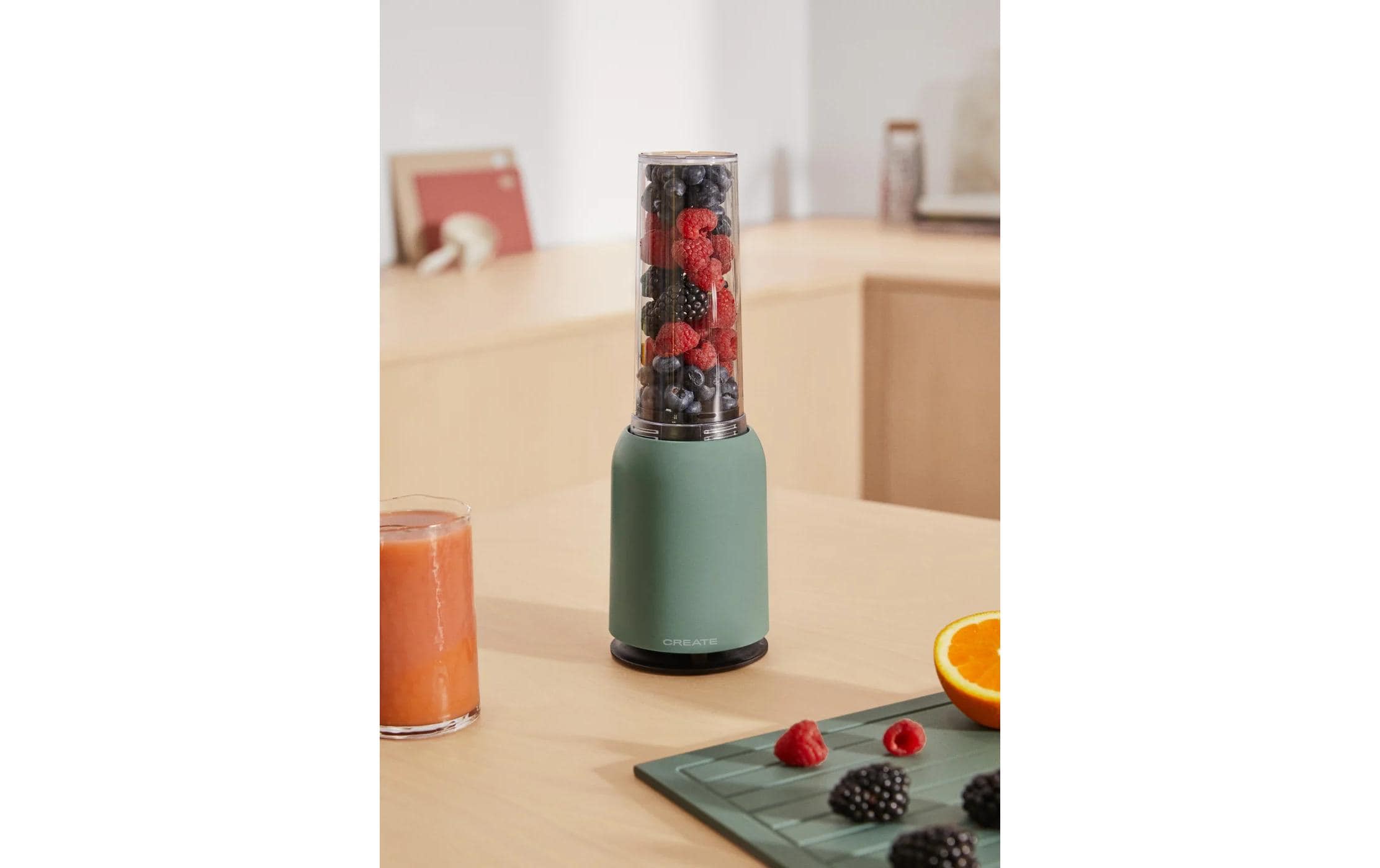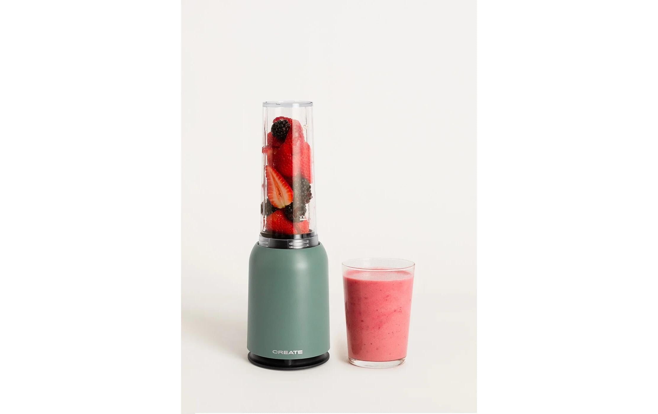 Tragbarer Standmixer mit 230 W Leistung, ideal für die Zubereitung von Säften, Shakes und Smoothies. Der mitgelieferte 400-ml-Becher mit Deckel und faltbarem Griff ermöglicht es, Getränke unterwegs zu geniessen. Eigenschaften: Leistung: 230 W Klingen: 4 Edelstahlklingen Becher: 400 ml Fassungsvermögen, BPA-frei Abmessungen: Ø100 x 305 mm Reinigung: Spülmaschinengeeignet (Becher und Klingen) Material: ABS, PP, Tritan (BPA-frei) Funktionen: Zerkleinert Obst, Gemüse und Nüsse; keine Eiszerkleinerung