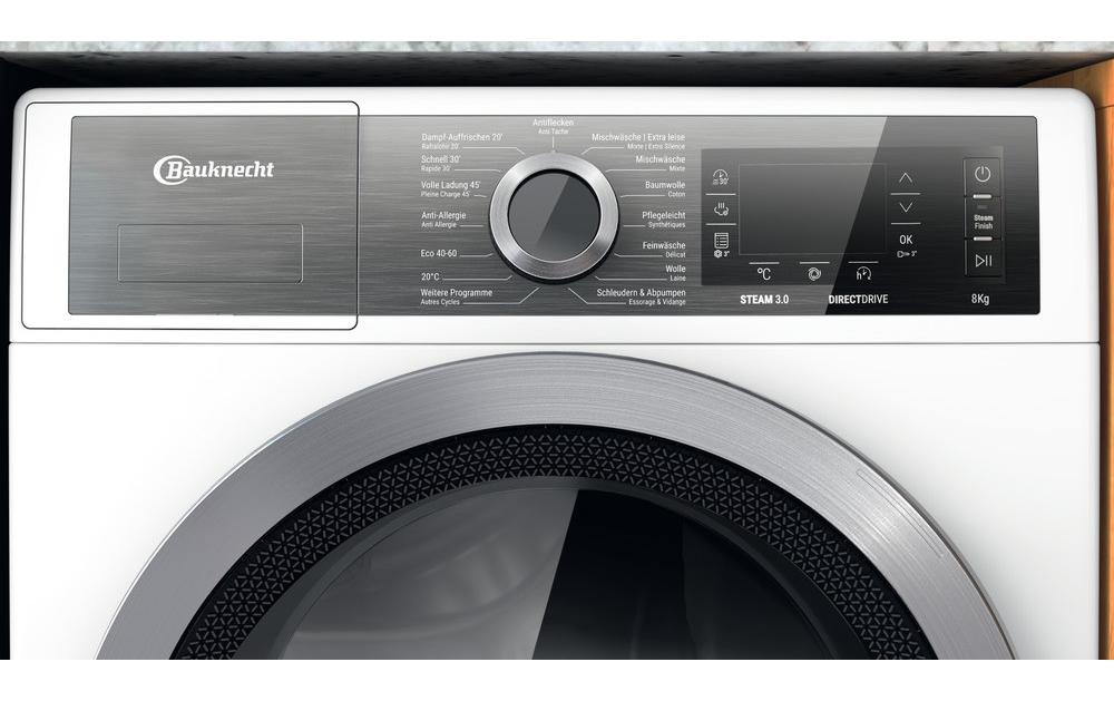 Die Vorteile dieser Frontlader-Waschmaschine von Bauknecht im Überblick. Geräumiges Fassungsvermögen bis zu 8.0 kg. in der Farbe Weiss. Geringer Energieverbrauch dank Energieeffizienzklasse B. Unkompliziertes, einfach ablesbares Textdisplay. Direct Drive-Motor, vibrationsarmer und besonders leiser Motor mit Direktantrieb und ein effektives Wasserschutzsystem.