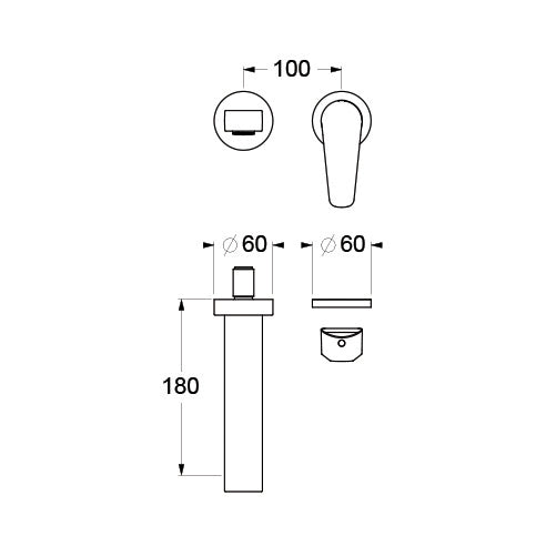 Äussere Teile des Einhebelmischers für Wandwaschbecken, Luftsprudler 24x1, ohne Ablauf. Nur in Kombination mit Artikel Y279-Z115-12.